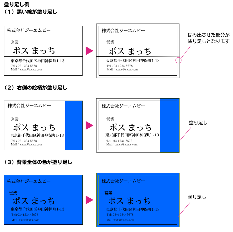 ※「塗り足し」がないデータはお客様に差し戻し、データを修正後、再入稿して頂く可能性がございます。