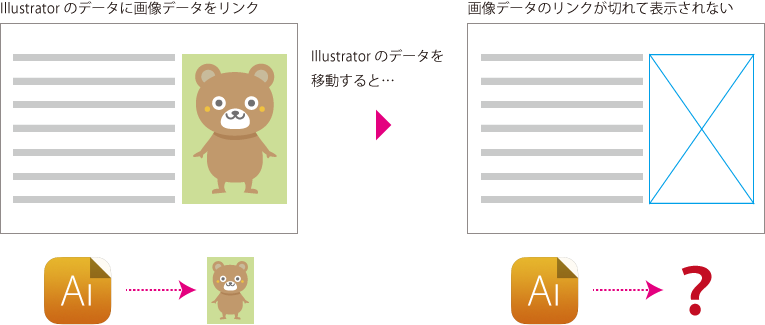 イラストレーターで画像を使ってデザインした場合、画像を元のファイルと接続した状態で配置することが出来ます。そうすることによって、元のファイルに変更が加えられた場合でもイラストレーターにその変更を反映することができます。しかし、別のパソコンでデータを開く場合や、ファイルを移動させた場合など画像のリンクが切れてしまう場合があります。